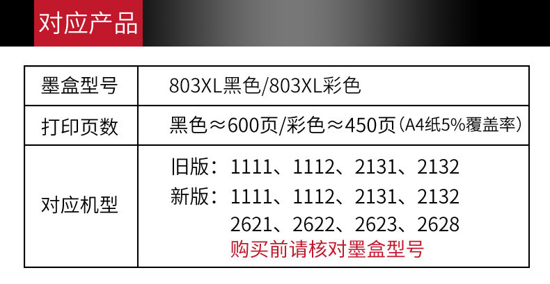 803 чернильный картридж подходит для HP HPDESKJET2621 1112 2132 2131 2110 1110 1110 2622 2622 2628 ПРИНТЕР SPRAY 803XL BOX BLACT
