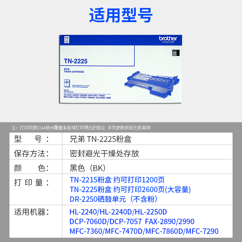 Оригинальный брат TN-2225 Powder Box TN-2215 Ink Mascamon Crusplasia MFC-7360 HL-220D DCP-7060D 7290 2890 7470D 7860DN