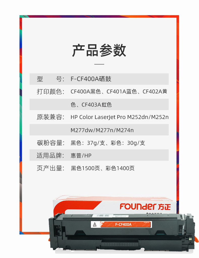 Тонер-картридж Founder CF400A подходит для тонер-картриджа для цветного лазерного принтера HP HP Pro M252n M274n M277dw M277n M252dn.