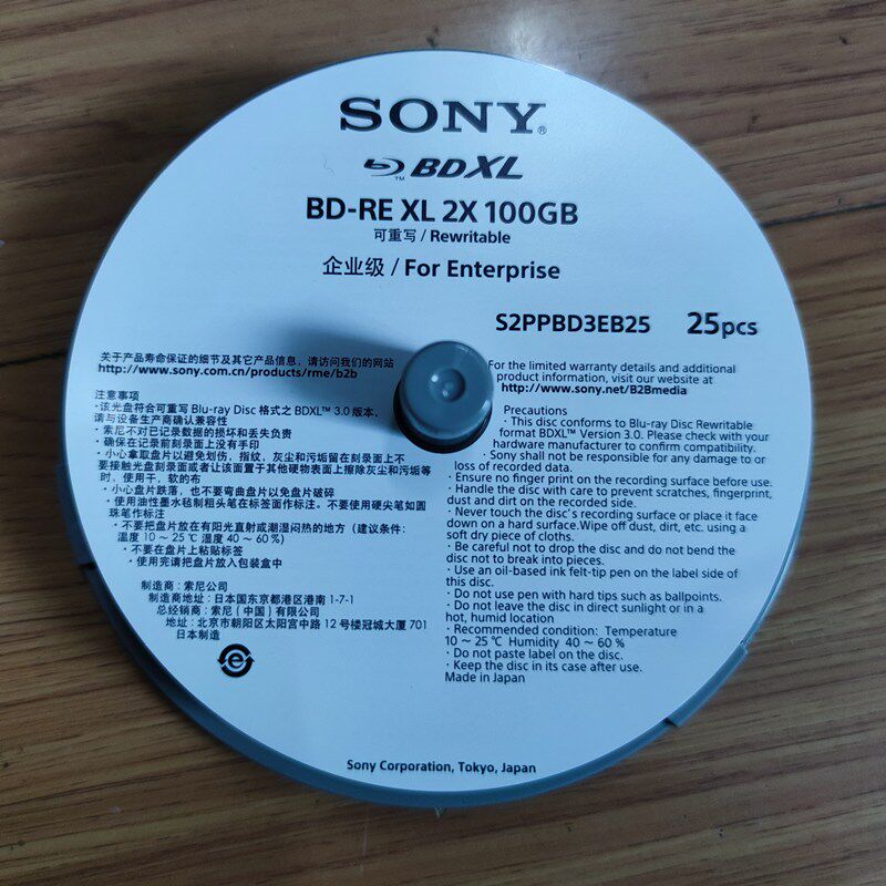 Японский уровень Sony Sony BD-RE XL 100G Уровень предприятия может многократно писать пустые записанные диски Blu-ray