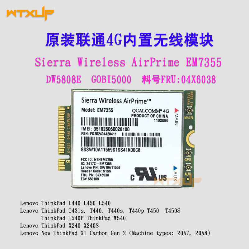 EM7355 FRU: 04X6038 NGFF 4G WWAN MODULE L440 L540 T440 T540P X240