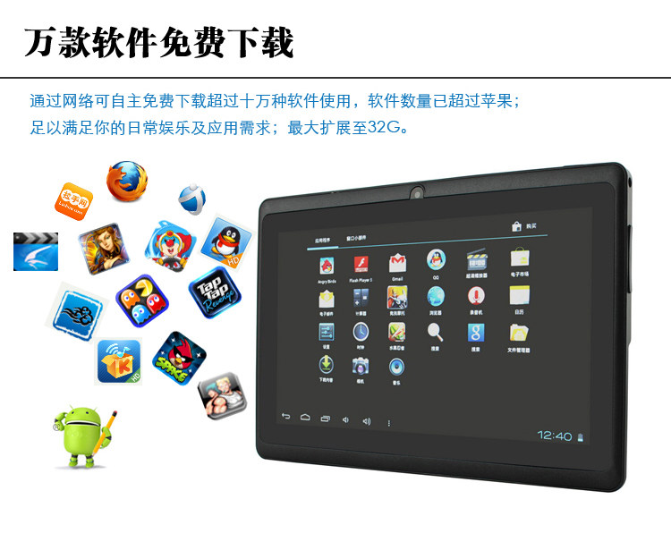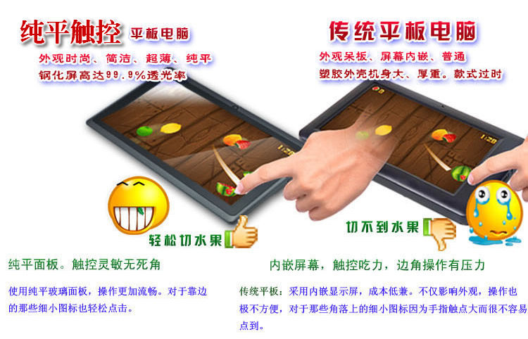 Разница между емкостью таблетки чистой безопасности и полной версией системы заключается в разнице между старым и старым встроенным планшетом системы Android 2.3: скольжение чувствительно, скорость интернета быстрее, прикосновение кажется более идеальным, более точным и функция более полна.Чистый внешний вид плоского самолета более изысканный, красивый и высокий.Но цена продажи была ниже, чем у старой модной системы Android 3.0 ниже рынка на рынке.