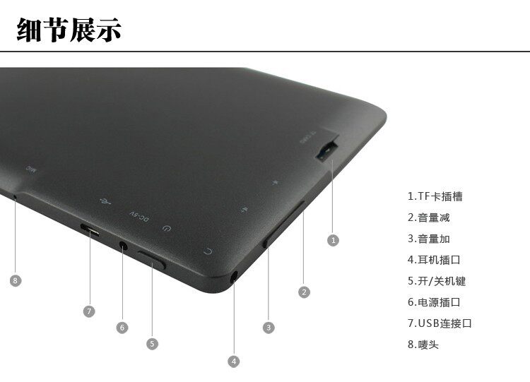 Подлинный планшет A33 с использованием процессора A33, основная частота процессора 1,2 ГГц, 51 МБ, 1 ГБ памяти, 8 хранения, 7 -INCH 1024*600 Пять -точечный экран сенсорного конденсатора, фронтальная камера, батарея 3000 мАч, поддерживает 2160p HD Видео Decoding, Mali400, 3000 мАч. графический процессор.Специальная особенность Yun Pad A33 заключается в том, что на экране используется технология IPS, супер -тонкую, многоспективную, чувствительное прикосновение, поддерживает технологию DPU, основную частоту 1G, 5 -точный экран сенсорного конденсатора, Wi -Fi Online Смотреть фильм RMVB/MKV. , играть 3D 3D, играть в 3D крупномасштабную игру,