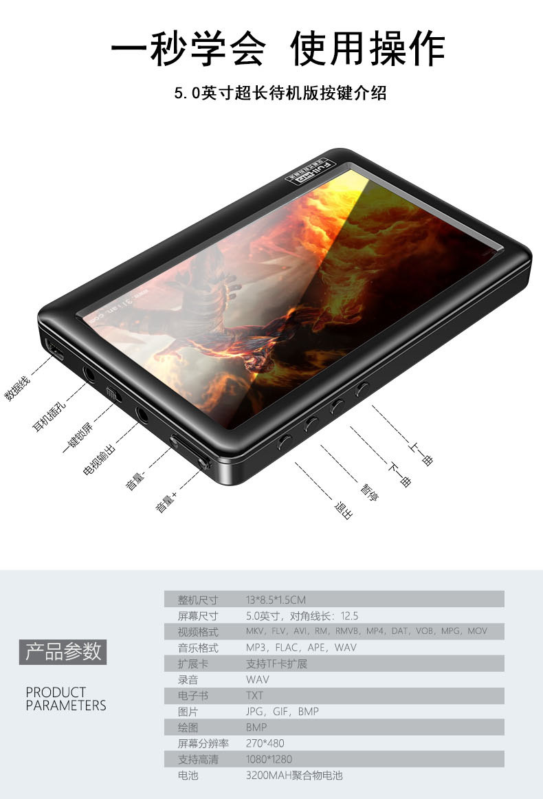 Подлинный Purple Light 5 -INCH MP5 Ultra -Long STANDBY HIGH -DEFINITION MP4 Игрок Студент MP3 E -Book WiFi может получить доступ к Интернету