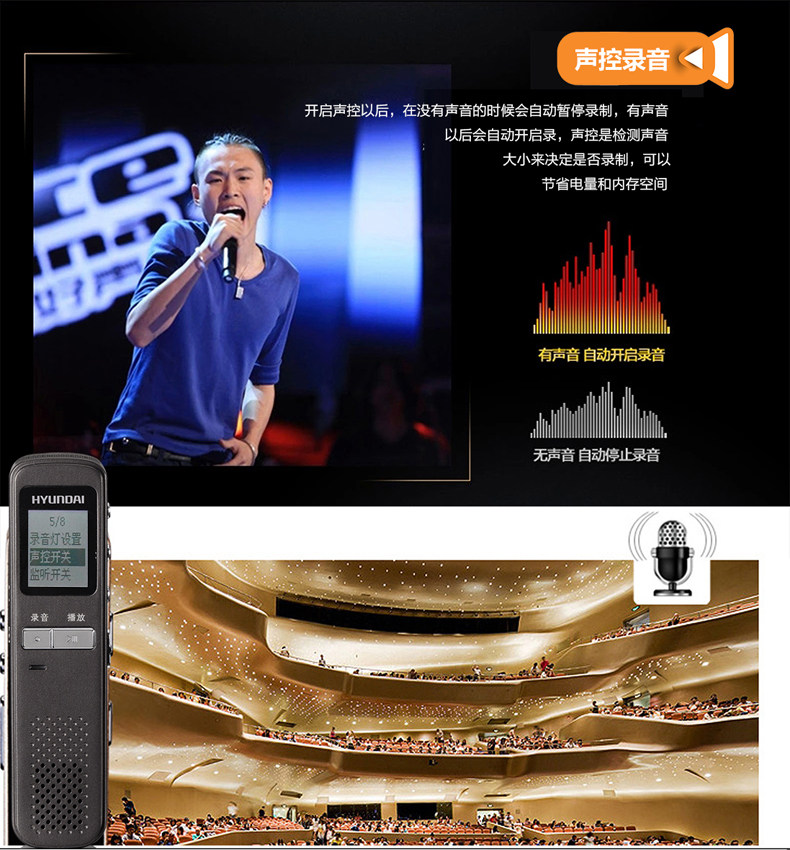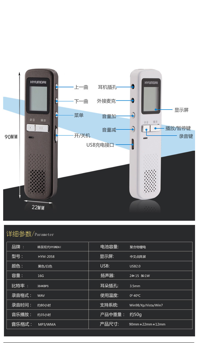 Южная Корея Hyundai 2058 (16G) Микро -профессиональная запись Pen HD Ultra -Long Long -Term Control Control Mp3 Подлинное