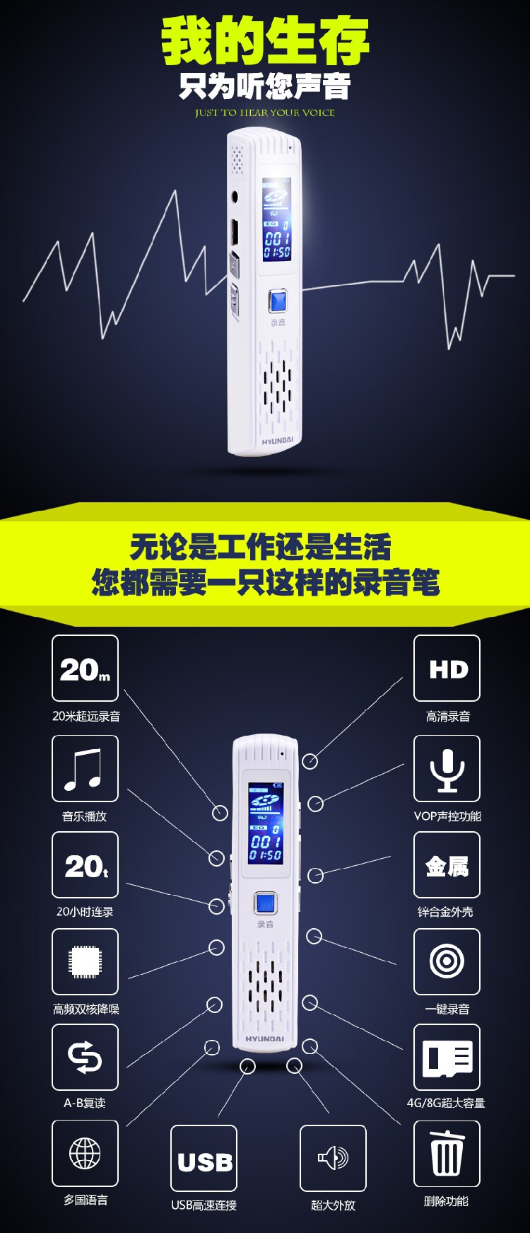 Hyundai 3588 Professional HD Long Noise Replere Control Conference Conference Conference Busines