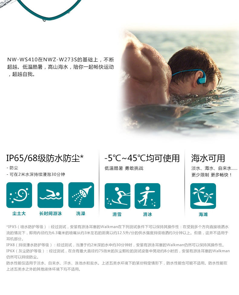 Sony/索尼 NW-WS413 Водонепроницаемое плавание в бегом спортивного MP3 Музыкалист All-In-One
