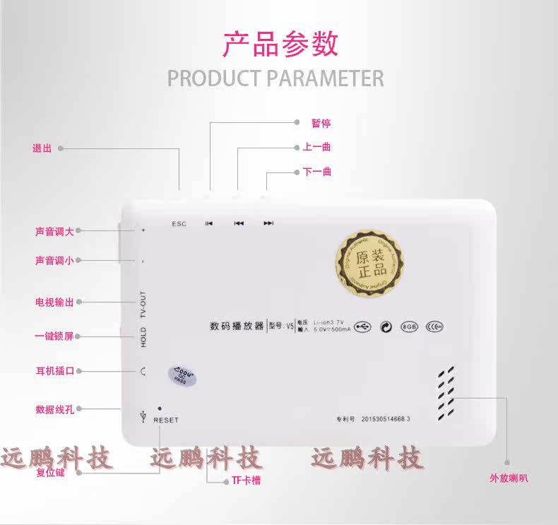 Cool Dog Ziguang Electronics 5 -INCH V5MP4MP5 Video Player 3800 MAH HD -конденсаторы касаются Dajiao