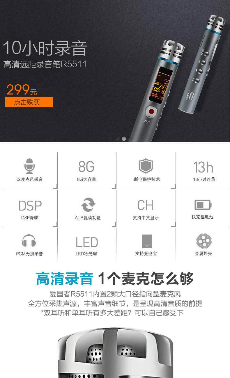 Патриот R5511 Запись ручка профессиональная HD -снижение шумоподавления Long Mini малая студенческая бизнес -конференция записывает ручку