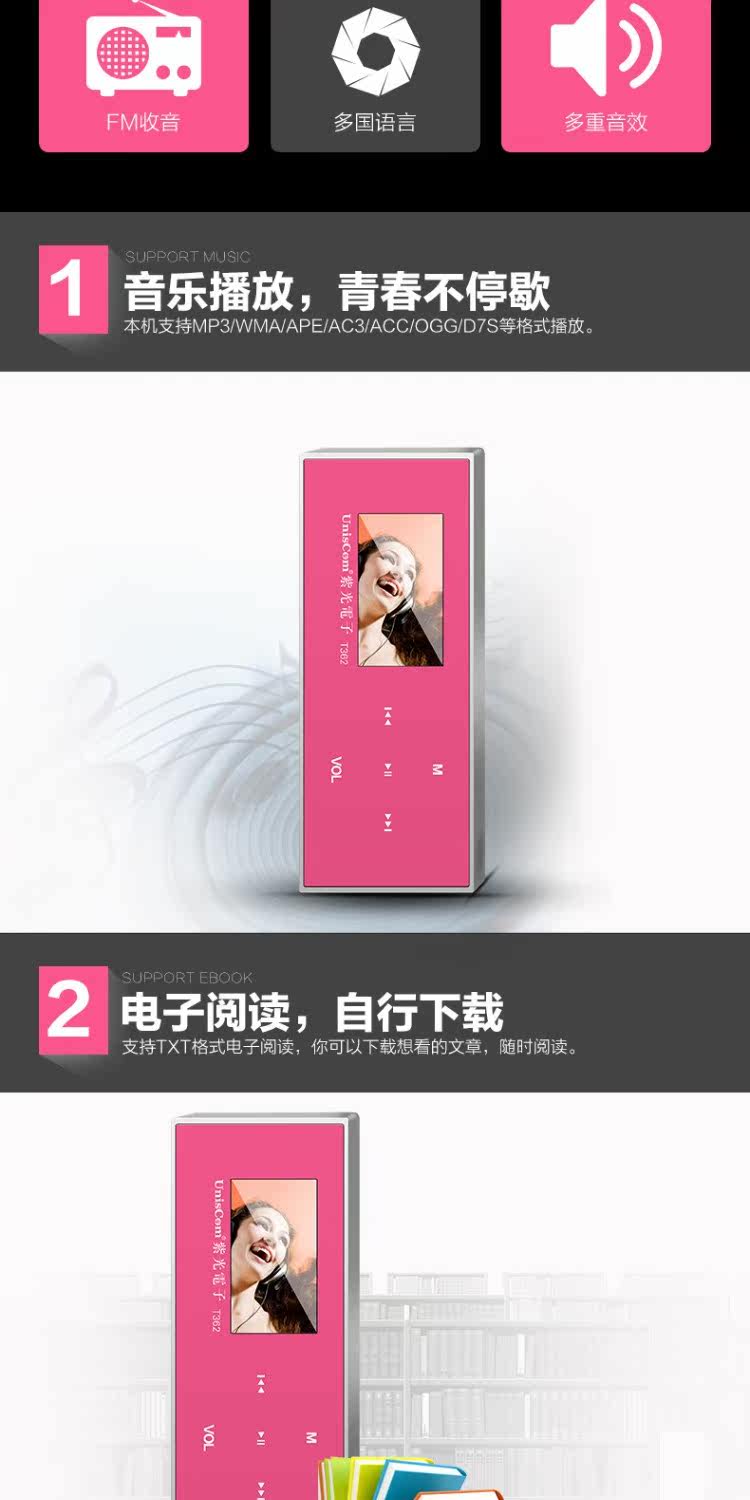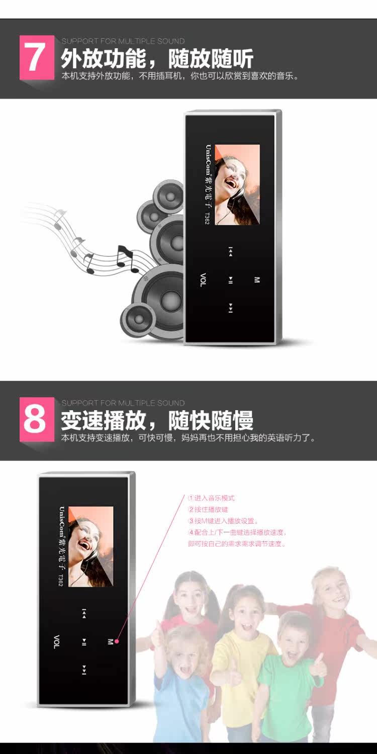 Ziguang Electronics MP3 -плеер T362 Запуск спортивной милый мини -мини -радиозапись