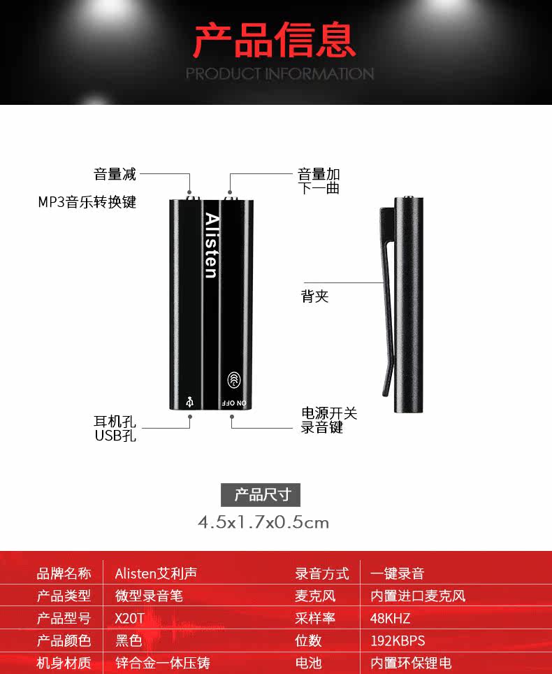Avery x20 Small Clip Recording Pen HD Control Long -Дистанция Ultra -Long Student Student Small 巧 MP3 Play
