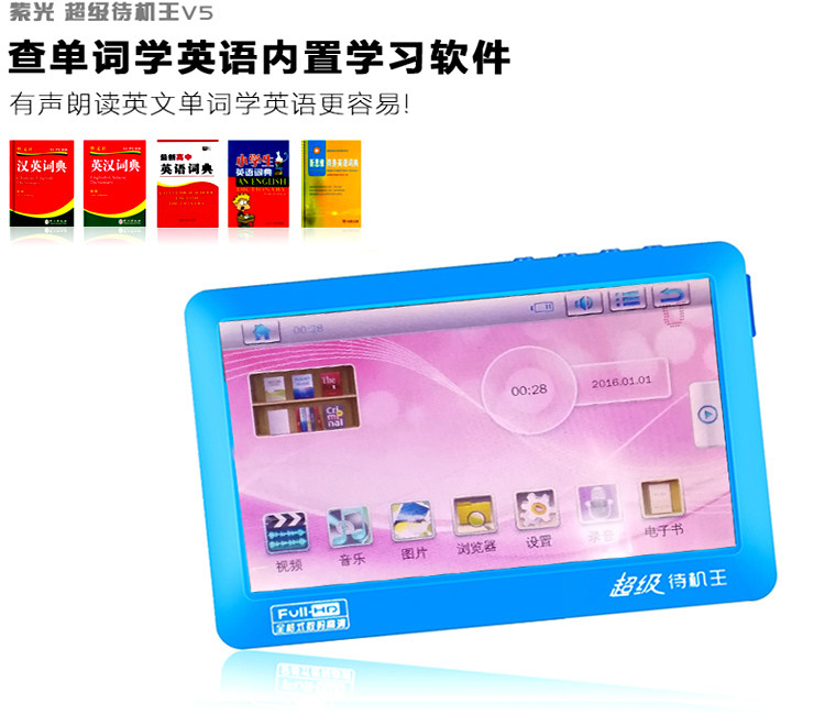 Purple Light 7 -INCH High -Definition Bluetooth сенсорный экран MP5MP4 Игрок E -Book