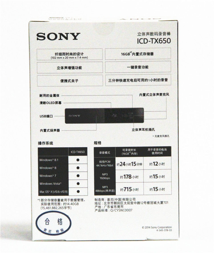 [Национальный банк] Sony/Sony ICD-TX650 16G Tweeter Digital Recording Pen Critical TX660