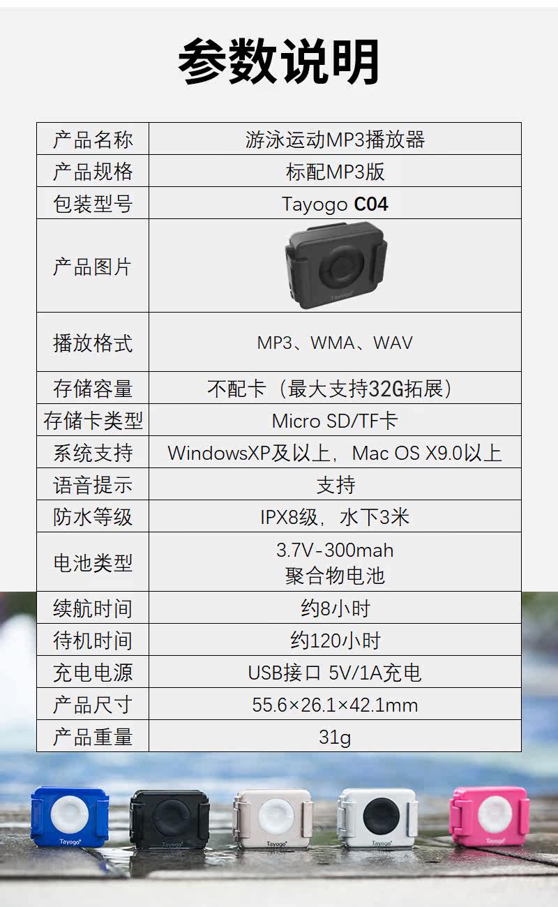 Tayogo C02 Плавание mp3 под водой прослушивание песни водонепроницаемые игроки Профессиональный IPX8 Уровень водонепроницаемы