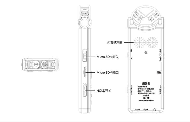 Патриотная запись Pen R5599 Профессиональное снижение шума HD Длиное расстояние супер длительное резервное резервное резервное время малая портативная запись для текста китайского иерога