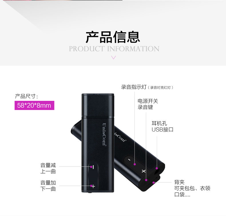 Uniscom Parker Recording Pen Professional Подлинный умный шум Удал