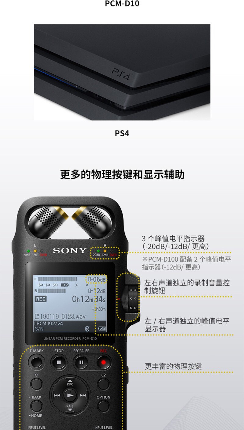 Sony/索尼 Запись Pen PCM-D10 Профессиональная цифровая запись цифровой цифровой шумоподавление неразрушающая музыкальный игрок