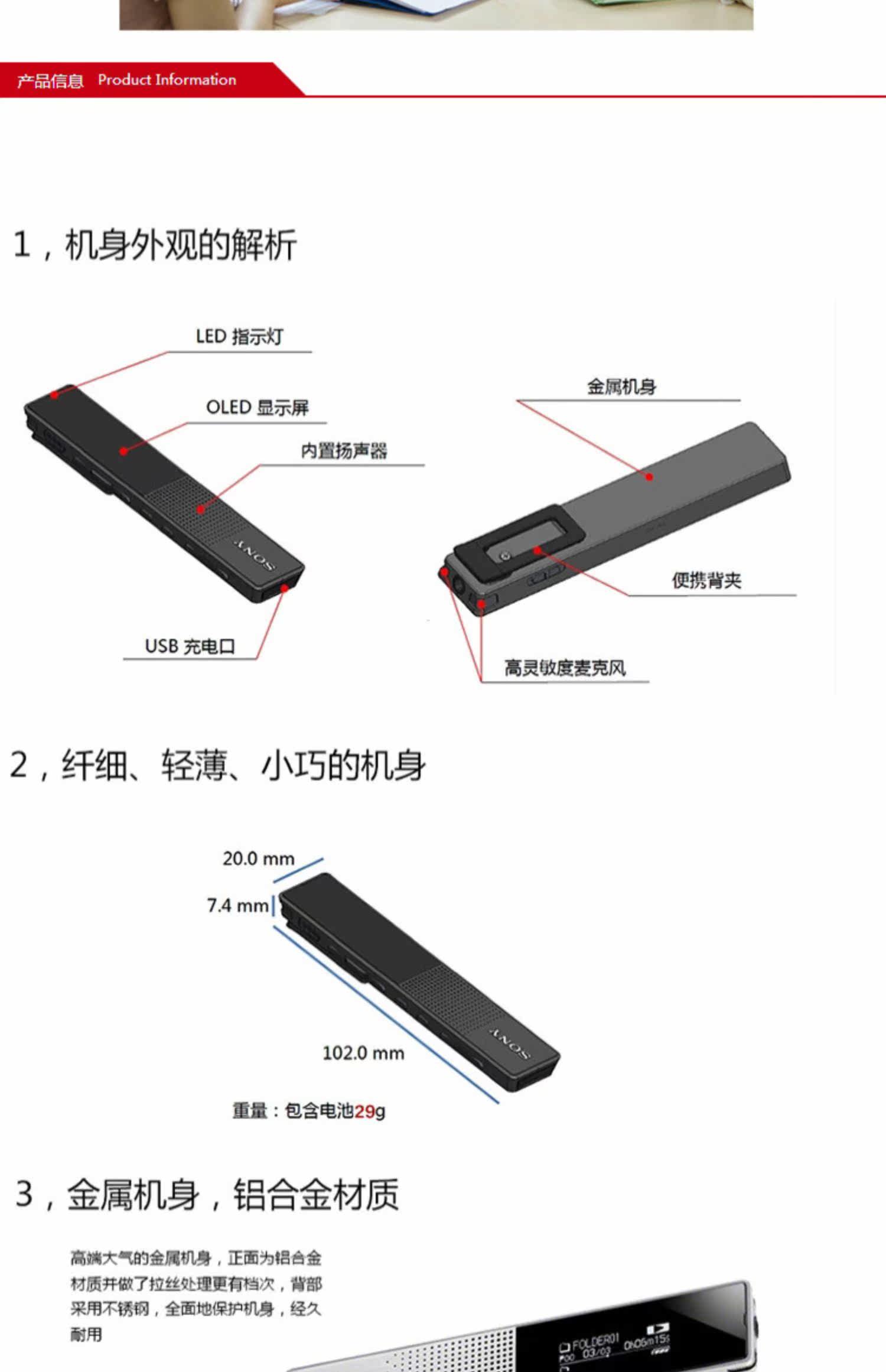 Sony Professional Recording Pen ICD-TX650 Class Conference Студенты с портативной MP3 High Definition можно поместить в бизнес