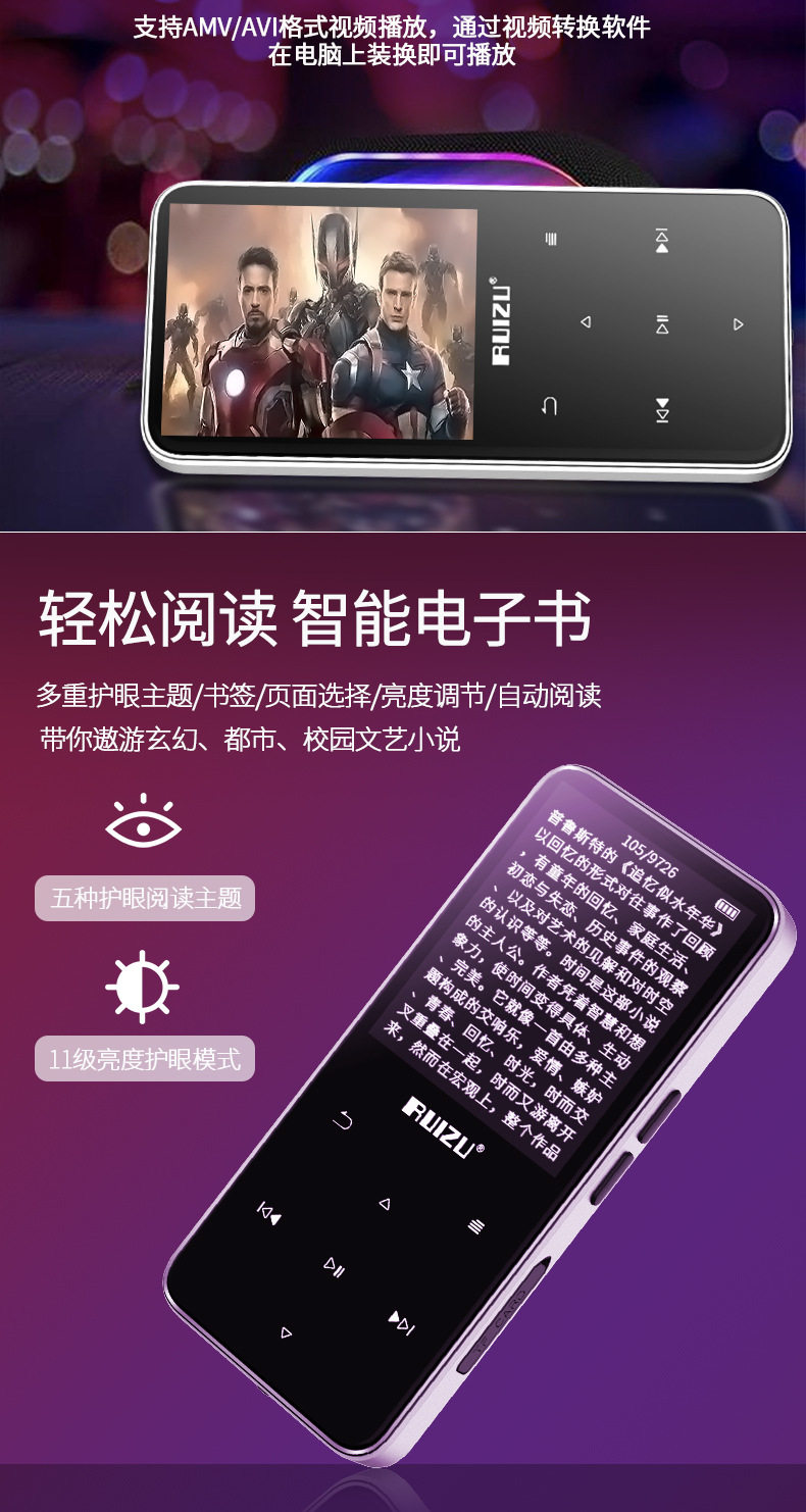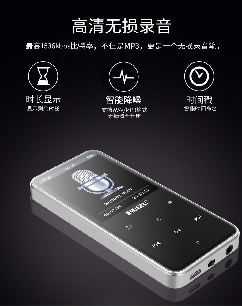 Ruizu Rui People D10 Metal 2.4 -Inch большой экран mp3/mp4 player bluetooth+внешняя карта выпуска может быть вставлена