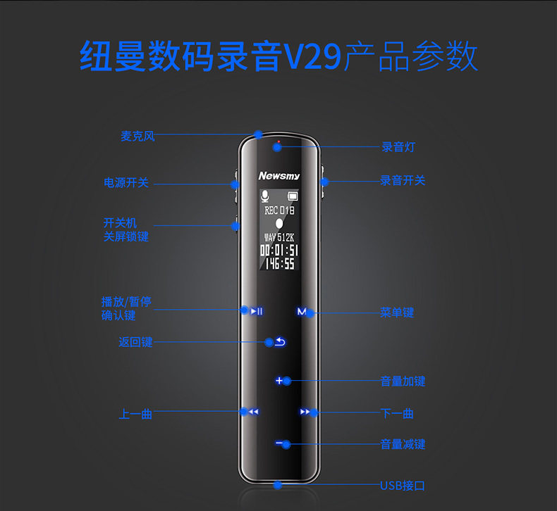 纽曼 /Newsmy v29 Записывающая ручка Профессиональная HD -снижение шума, неразрушающее, выносливость, большая способность, большая способность текста FM