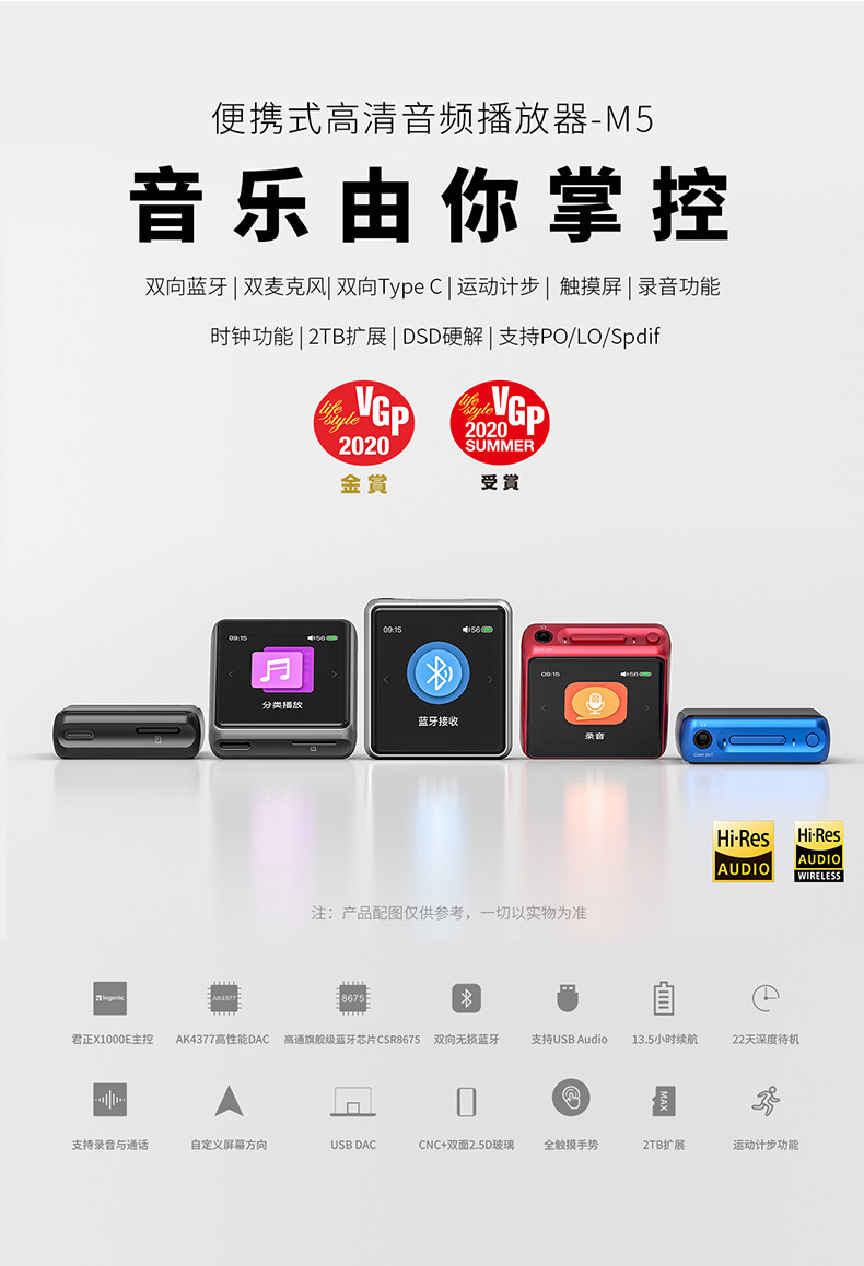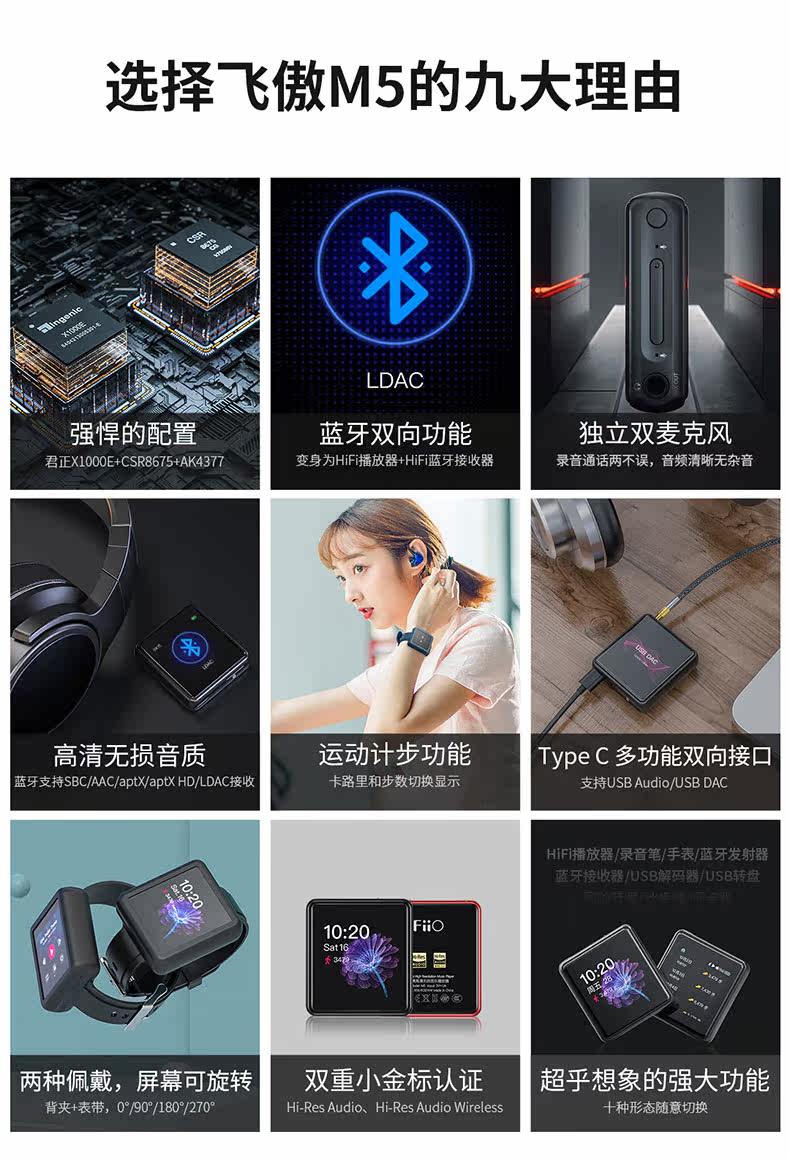 FiiO/飞傲 M5 Портативный студент MP3 Маленький Bluetooth Music Player Запись ручка щупальце -O -Screen Ear