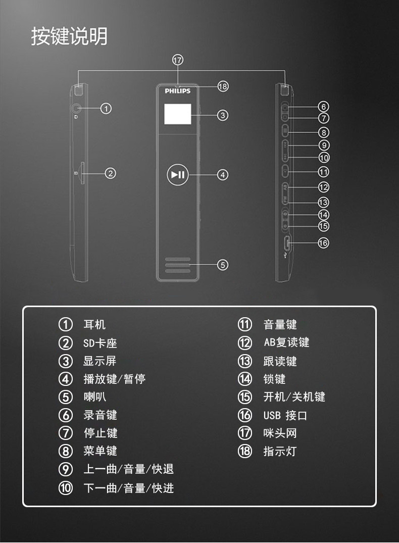 Philips записывает Pen Vtr5101 Профессиональный HD -снижение шумоподавления.