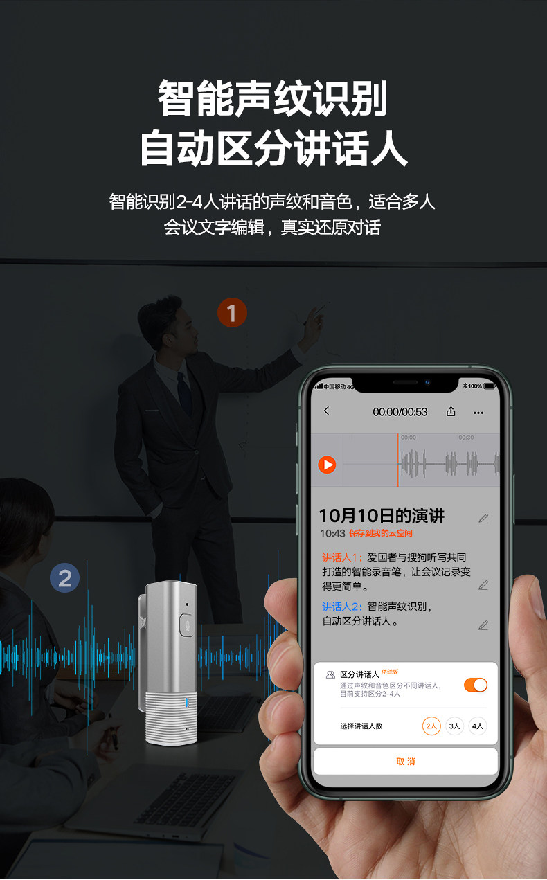 Патриотная запись Pen Professional HD -снижение шума удаленная запись для адвоката бизнес -конференции текстового класса супер длительный резервный режим