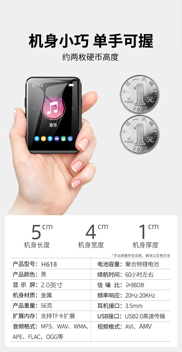 - Black Bluetooth 5.2+ словарь версии 2,0 дюйма H618