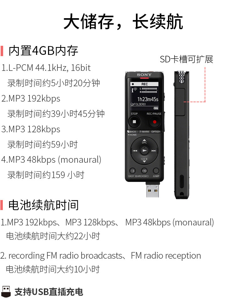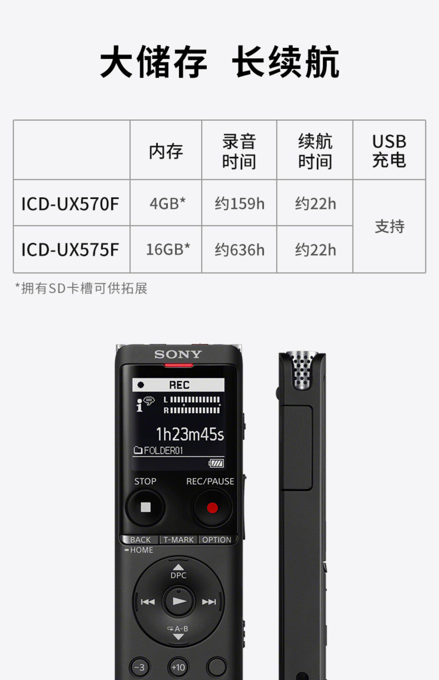 Sony/索尼 Запись PEN ICD-OUX570F HD Снижение шума бизнес-конференция Студент Студент Super Long Restby