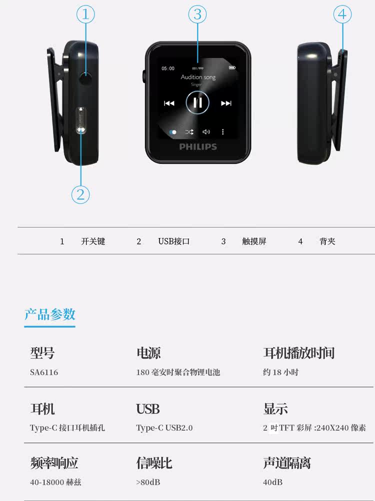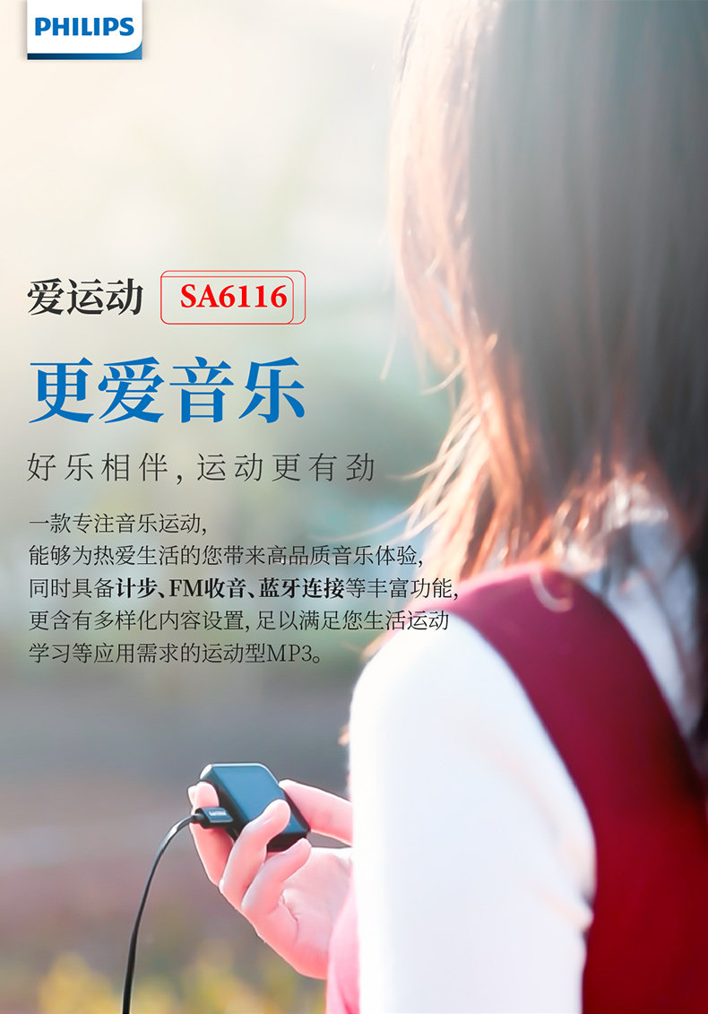 Philips Bluetooth Mp3 Music Player SA6116 Маленькое портативное обучение английский