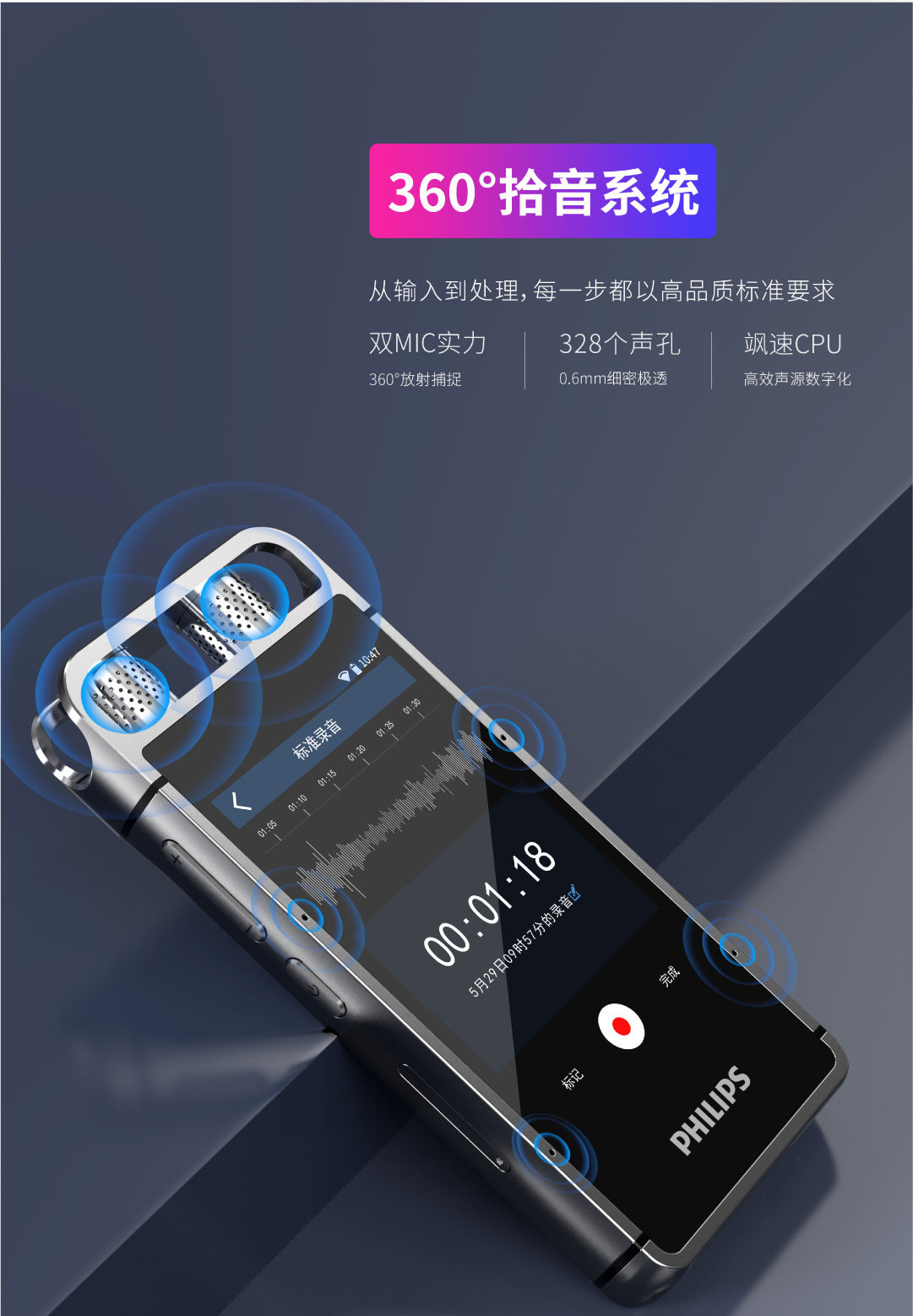 Philips AI Smart Recording Pen Vtr9000 Запись перевода ручка Текст Профессионал HD -снижение шума