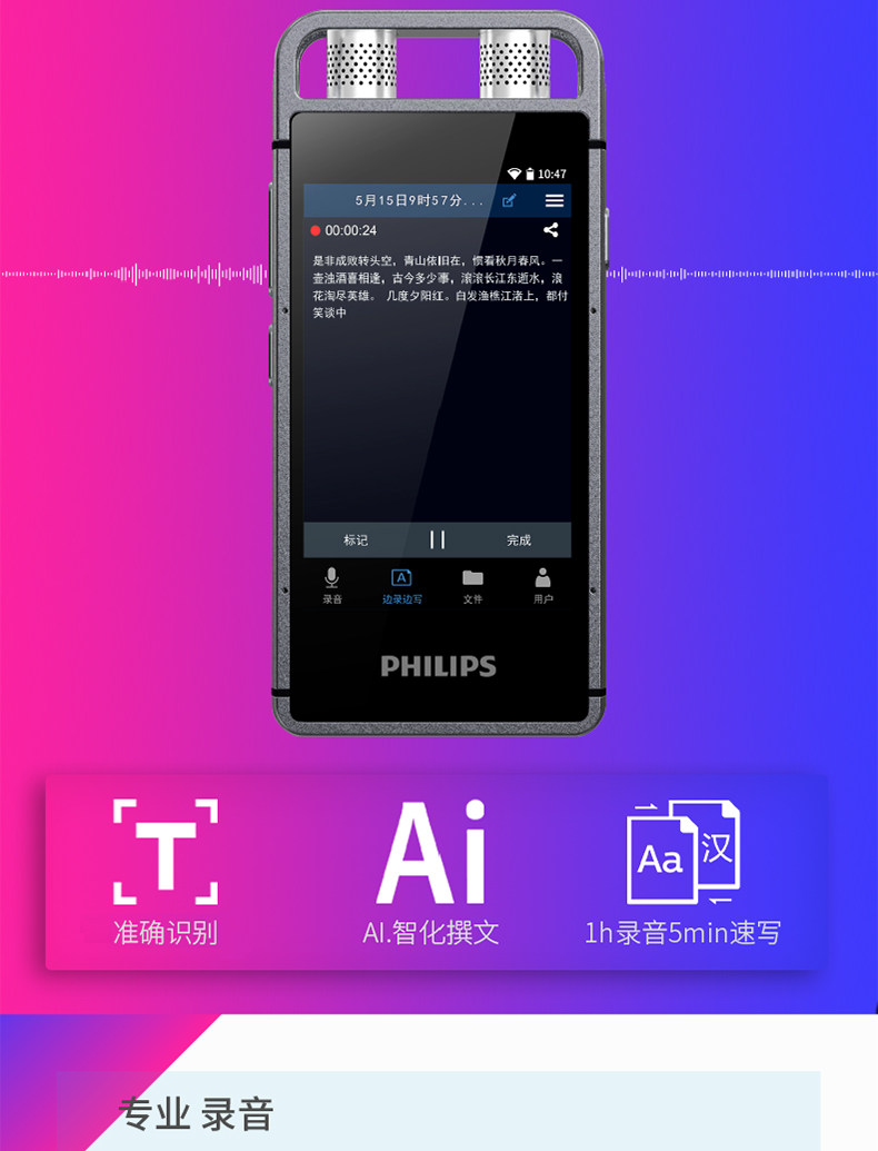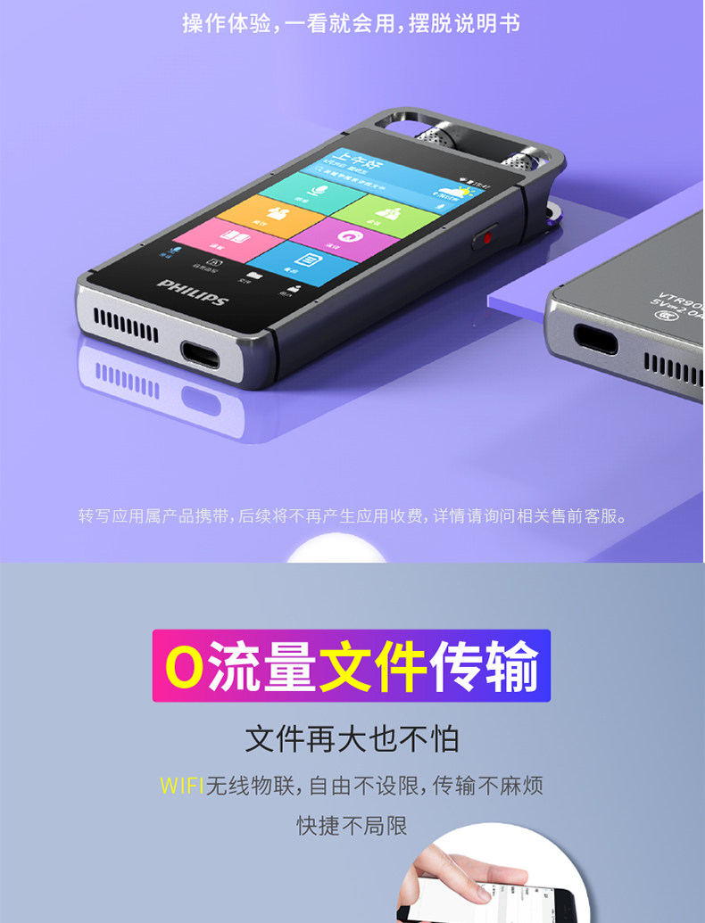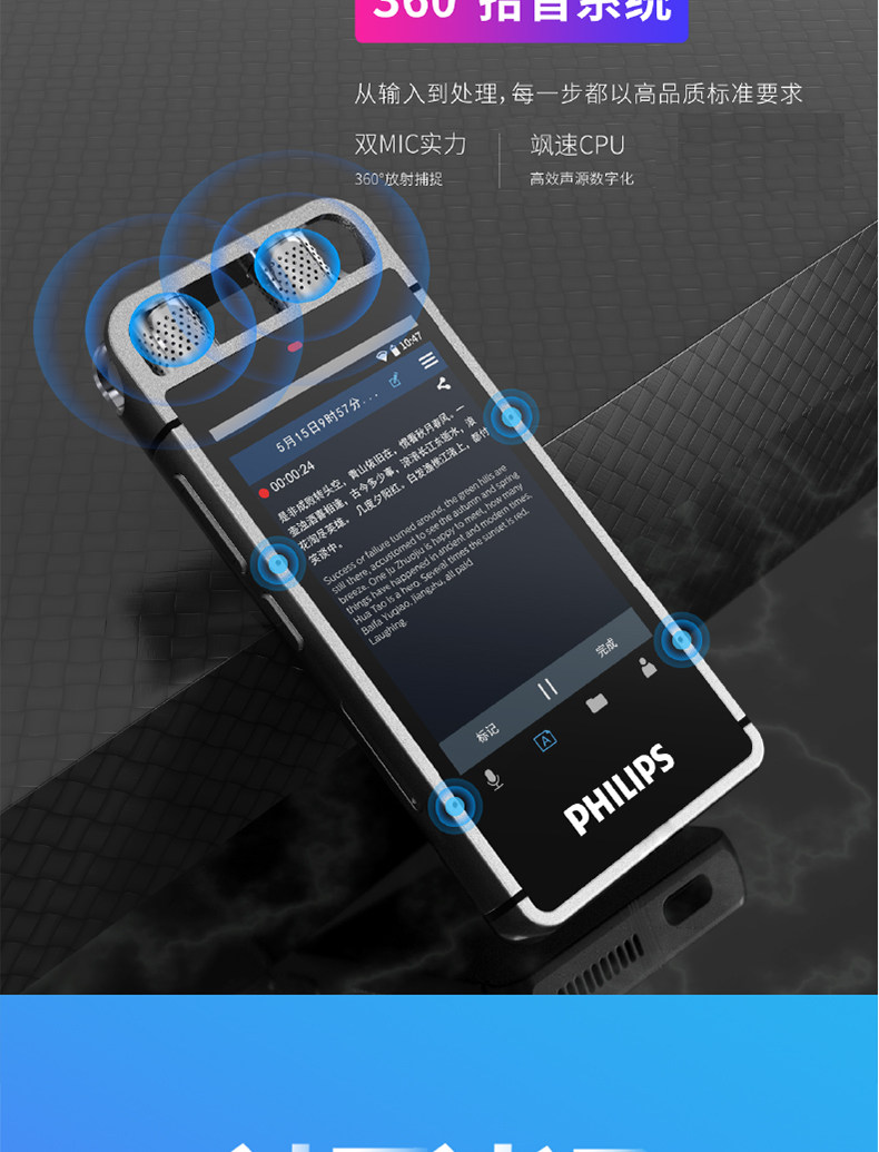 Интеллектуальное записывающее перо Philips VTR9000AI, бесплатная расшифровка и синхронизация записи на протяжении всей жизни, перевод по Wi-Fi, 16G