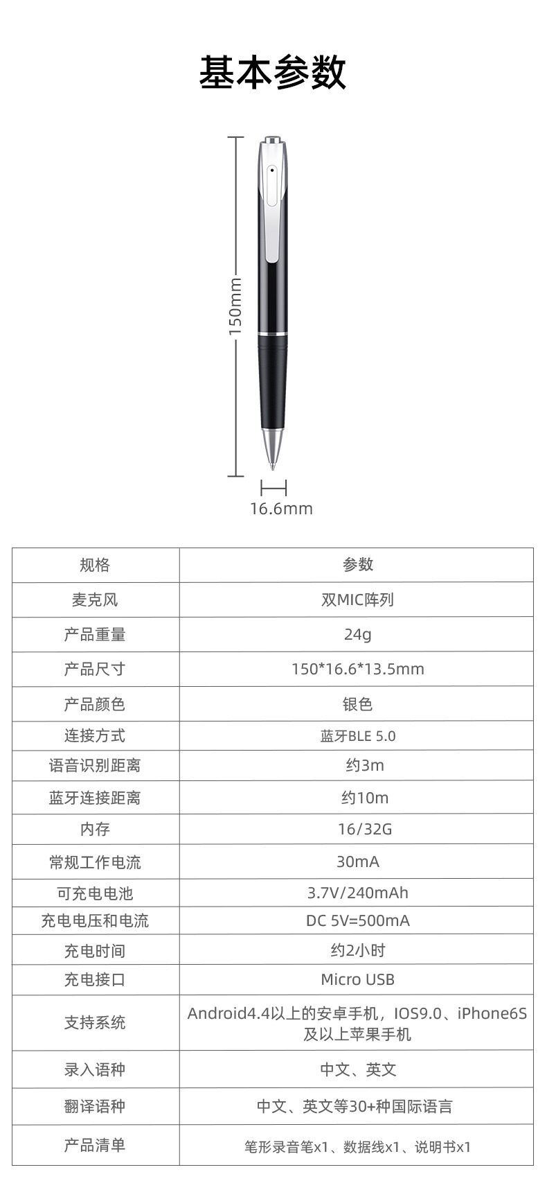 [AI Intelligent] Новый ключевой AI Intelligent Recording Pen Professional HD -снижение шумоподавления и современного интерпретации Используйте студенческий голос -тип -тип -текстовый звукозапись