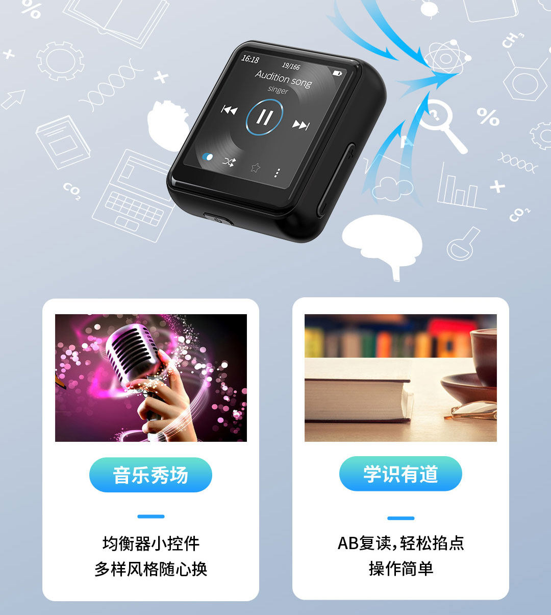 Philips, портативный маленький музыкальный обучающий плеер для школьников, MP3, MP4, английский