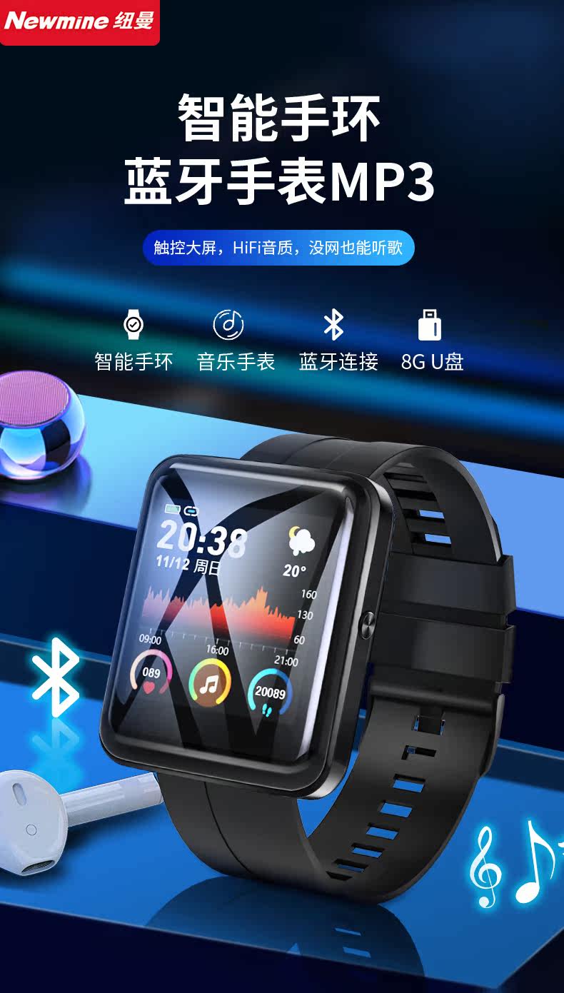 [Newman Watch/Sports Back Covery Two -one] Sports Bluetooth Mp3 Маленький портативный mp4mp56