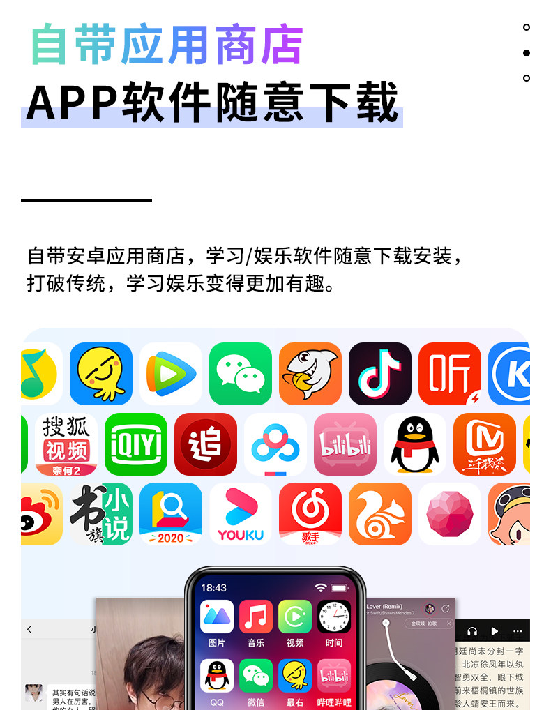 松酷 Плеер для школьников, MP4, MP3, bluetooth, MP5, MP6