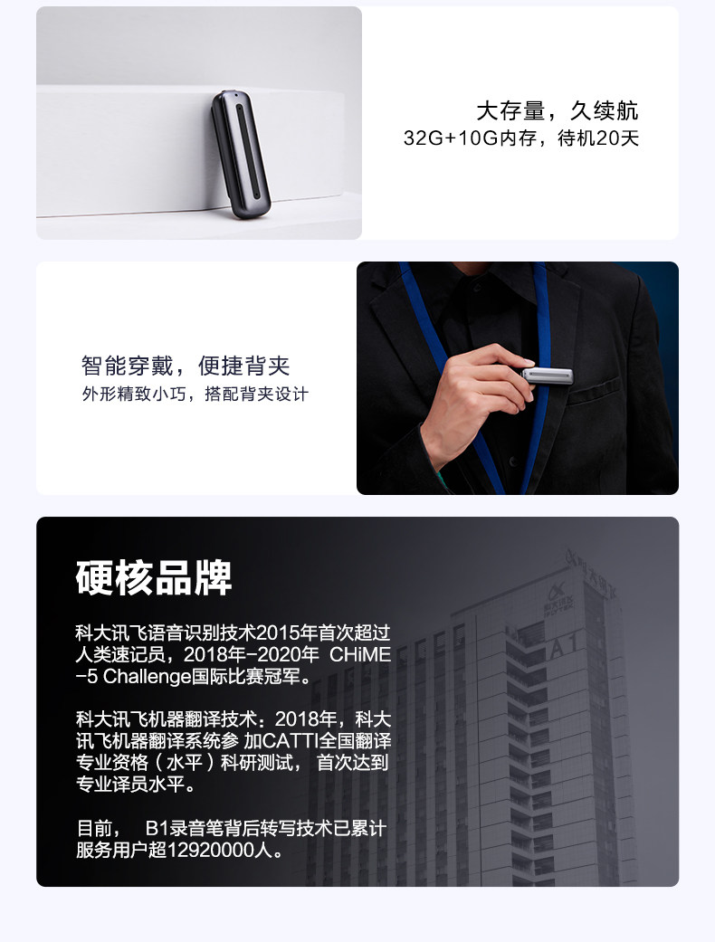 科大讯飞 Запись устройства записи B1 B1 Небольшой перевод PEN Профессиональная шумоподавляющая