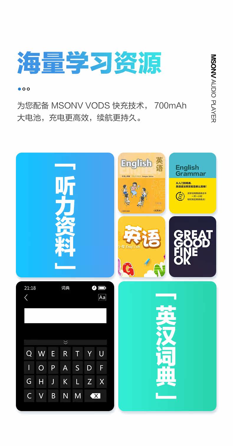 Обучающий портативный ультратонкий музыкальный плеер для школьников для прослушивания и чтения, MP3, английский, MP4, MP5
