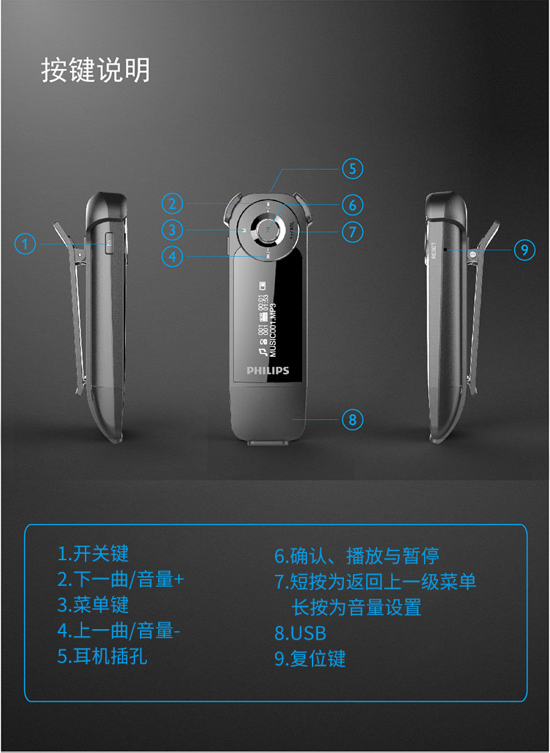 Philips, цифровая обучающая машина для школьников, USB-флеш-накопитель, портативный маленький плеер с зарядкой, MP3, английский, для средней школы