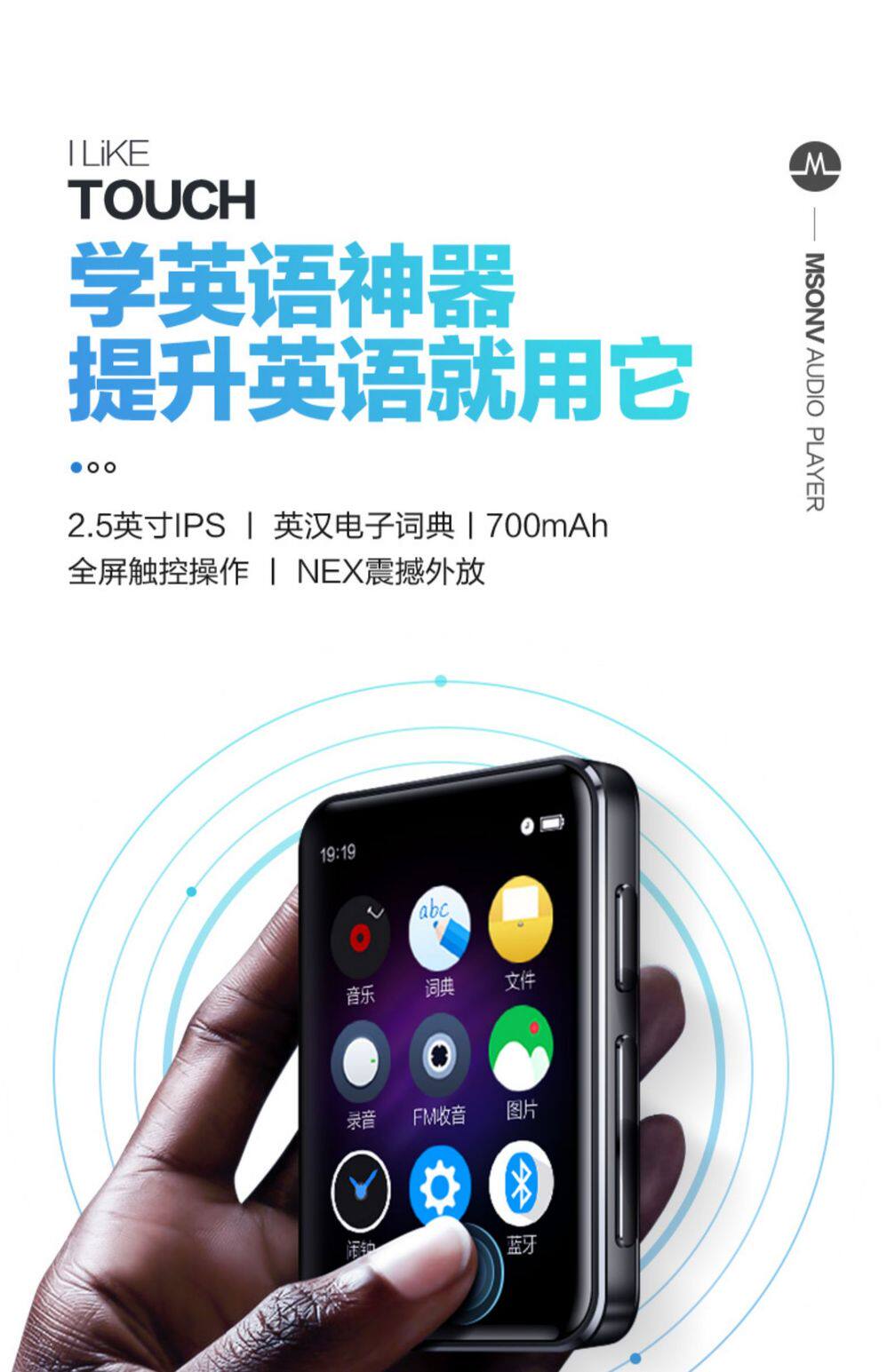 Наушники для школьников, маленький ультратонкий плеер, bluetooth, полноэкранный дисплей, MP3, английский, сенсорный экран, MP4, MP5