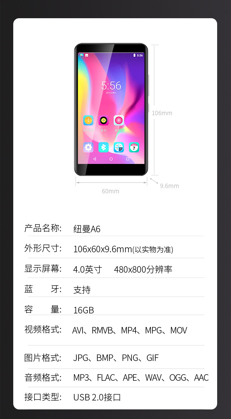 纽曼 Плеер для школьников, MP5, MP6, MP4, 4 дюймов, 5 дюймов
