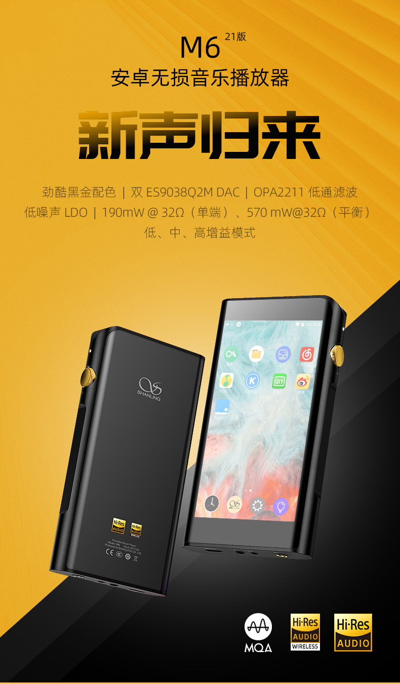 山灵 M6 21 Версия неразрушающего музыкального проигрывателя MP3 Портативный цифровой Bluetooth Android High -Definition Fever