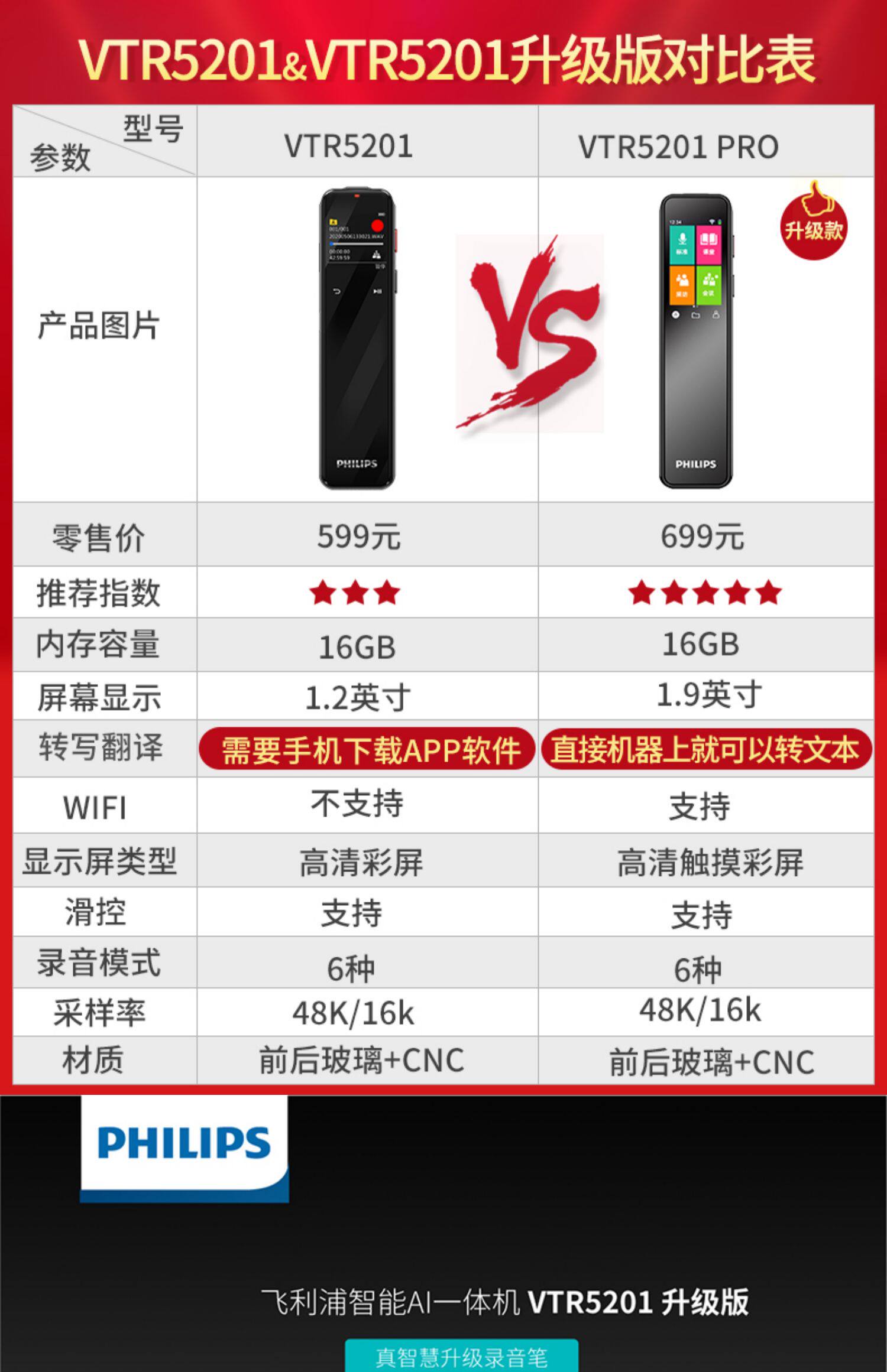 Philips VTR5201 Обновленная версия 16G HD -снижение шума для текста вне профессиональной интеллектуальной записи записи