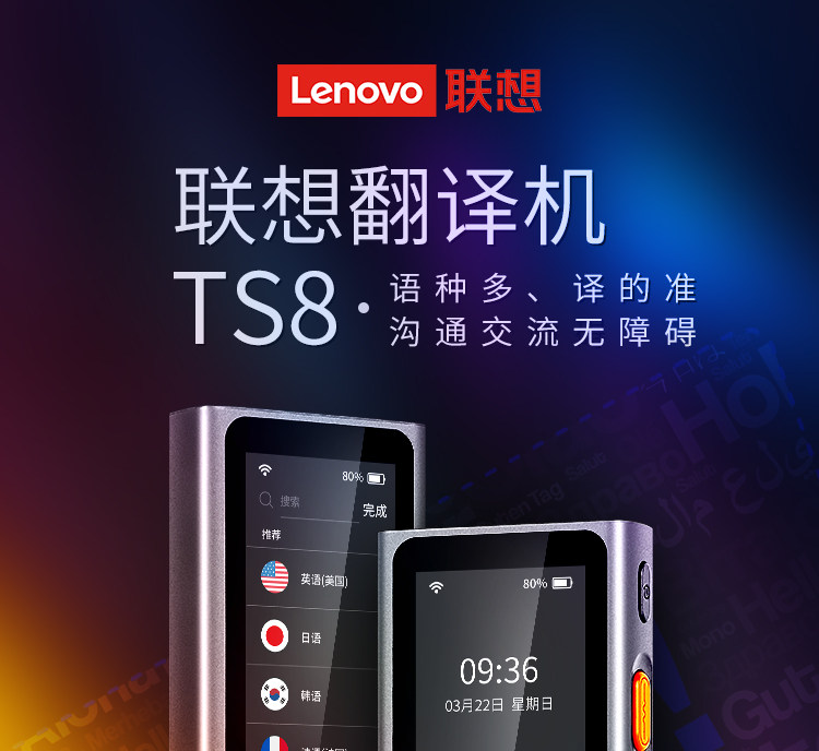 184 Lenovo Smart Translation Machine TS8 Voice Real -Time Translation Multi -Chinese Mutual Translation Запись Pen Word WiFi