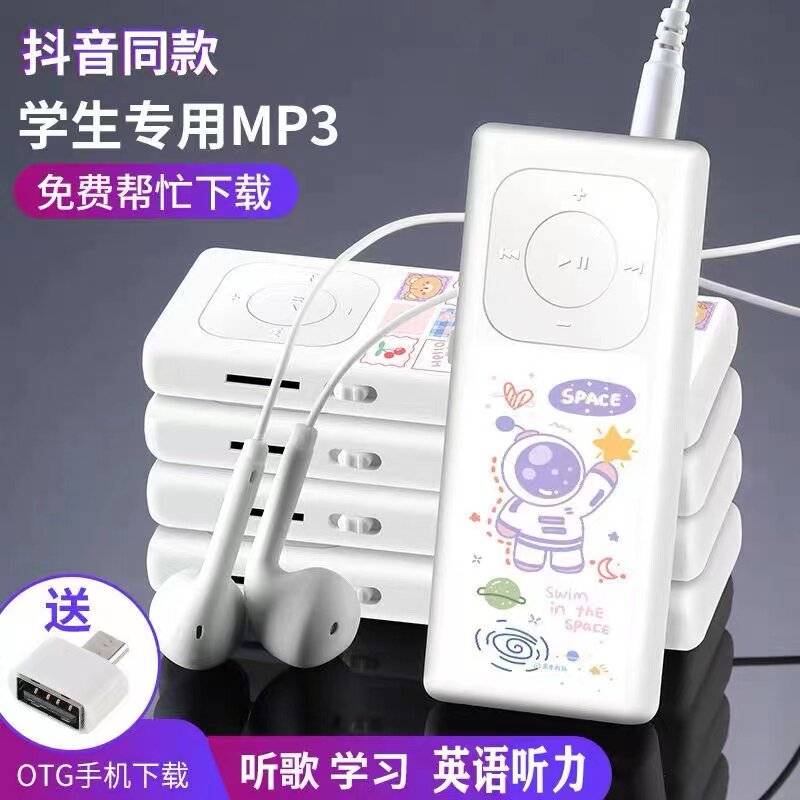 Музыкальный портативный маленький мультяшный плеер для школьников, MP3, MP4, английский