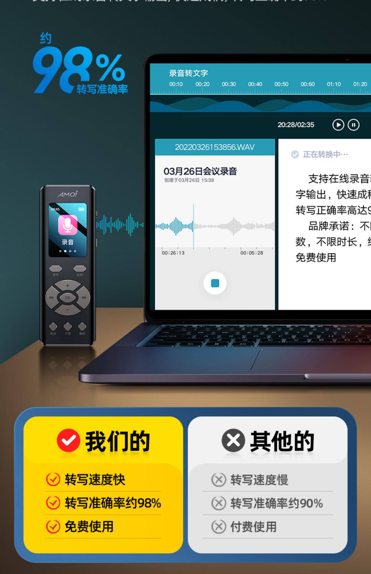 Xiaxin recording pen Небольшой портативный высокоопределение шумоподавления супер длинный резервный резерв