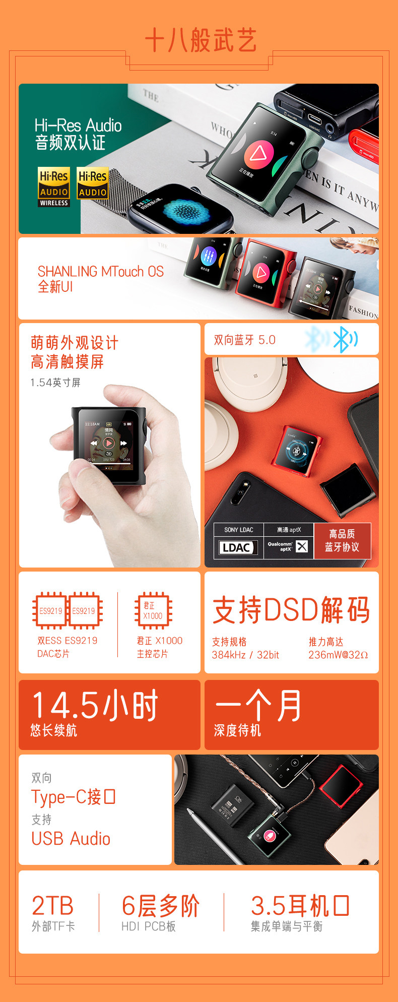 Shanling M0 Pro Pro Lossless Music Portable Android Player Hifi Bluetooth Декодирование сенсорного экрана Earmatch