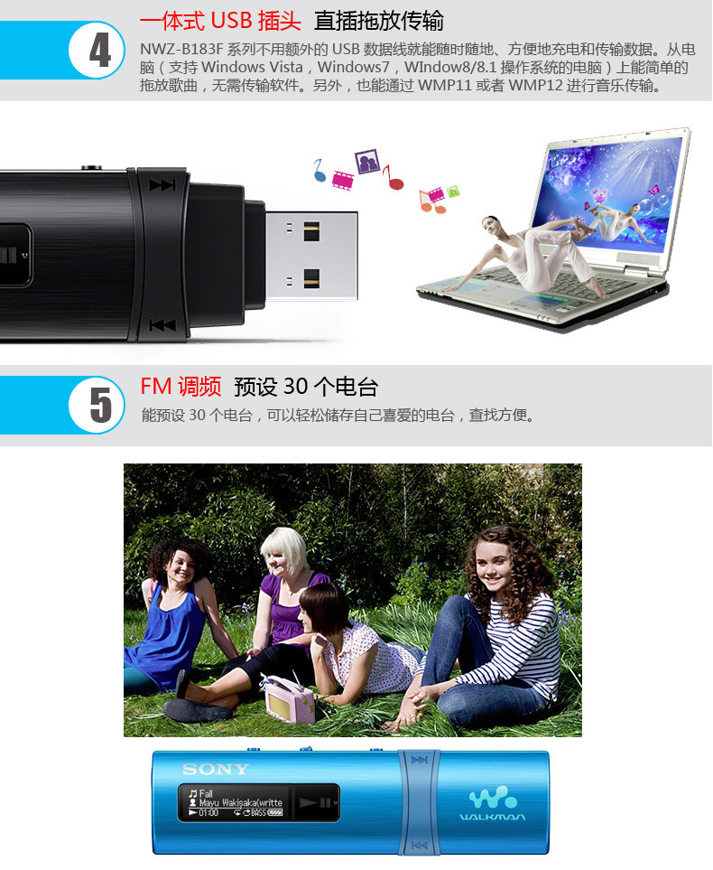 Sony Sony B183f M504 MP3 Mp3 Music Player FM Radio Student English Learning Sports Runge Runge