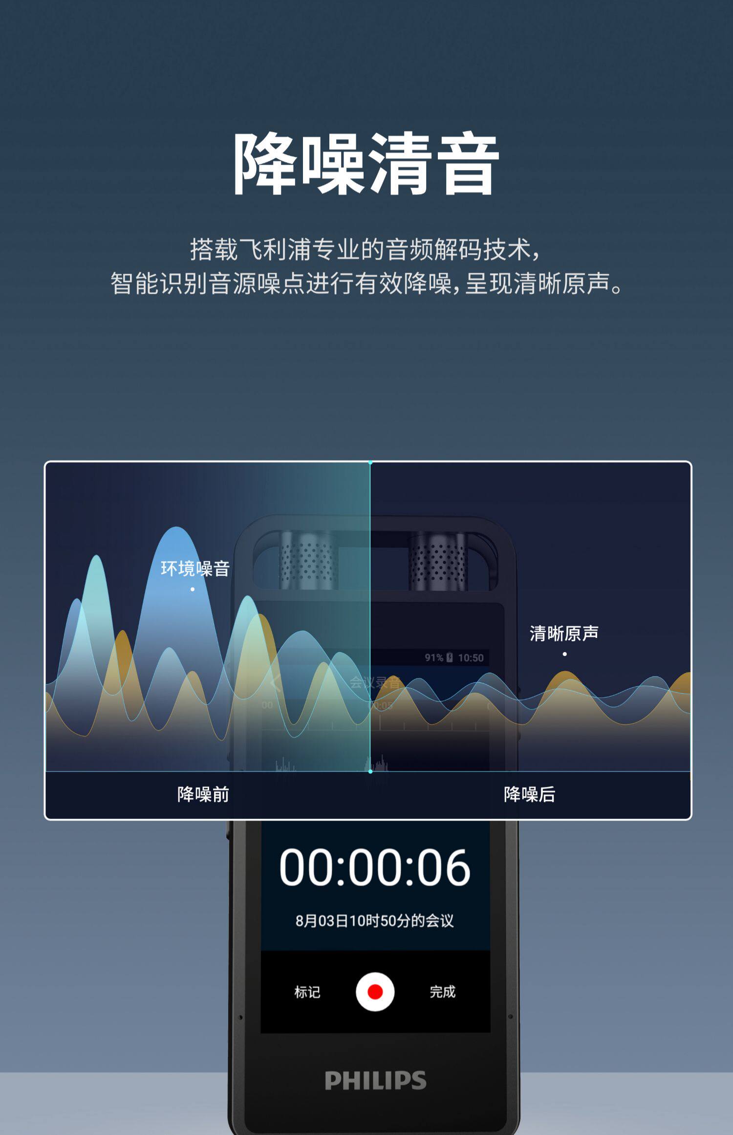 Philips запись Pen Vtr9000pro запись Pen Professional HD Снижение шума