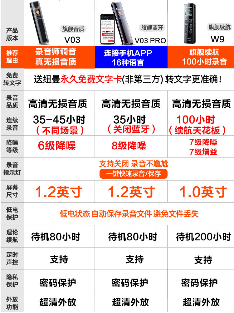 纽曼 W9 Запись Pen Professional HD -снижение шума портативное, долгосрочное резервное студенческое адвокат может перенести текстовый артефакт